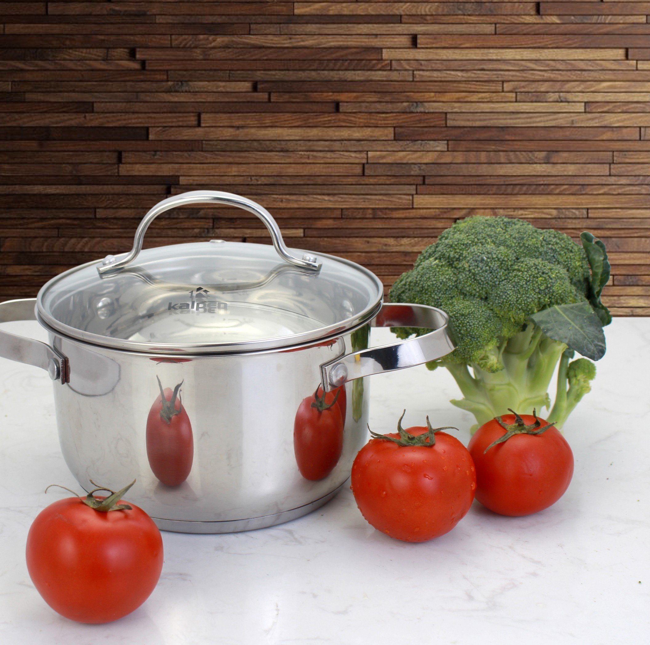 - Bộ nồi Inox Kalpen có thiết kế thông minh với nắp nồi kín khít, giúp giữ lại hương vị và dinh dưỡng của thực phẩm trong quá trình nấu nướng. Nắp nồi còn được thiết kế với lỗ thoát hơi nhỏ, giúp giảm thiểu khả năng bắn hơi nước ra ngoài.