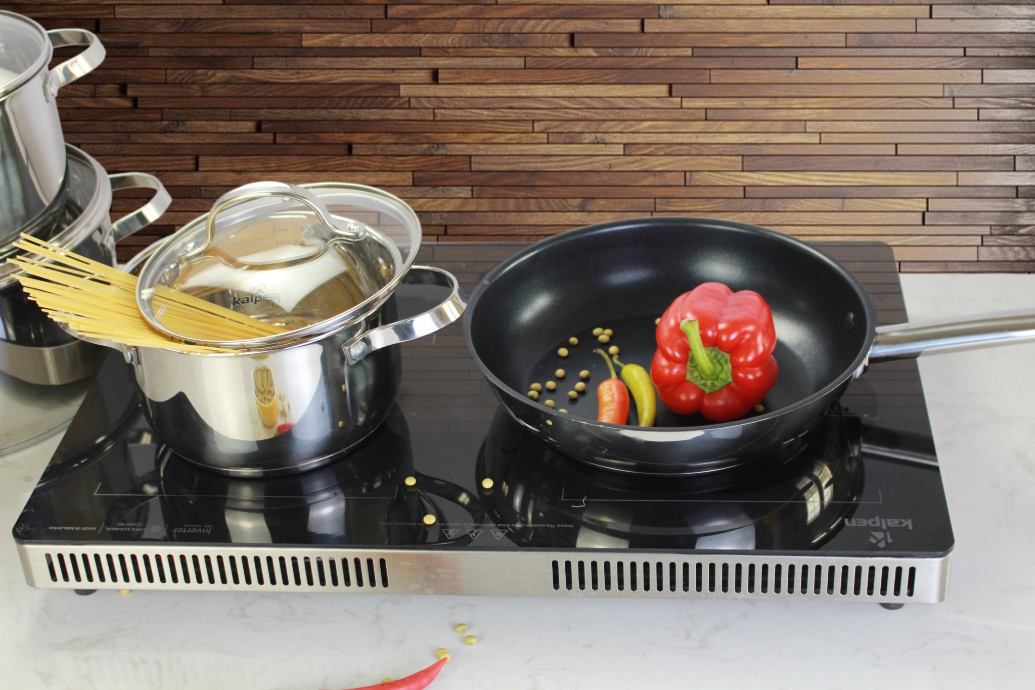Bếp từ : Bộ nồi Inox 5 lớp đáy của Kalpen được thiết kế đặc biệt để sử dụng trên bếp từ, với lớp ngoài cùng là Inox 403 có khả năng dẫn nhiệt tốt, phản ứng từ nhanh, giúp nồi nấu nướng nhanh chóng và hiệu quả trên bếp từ.