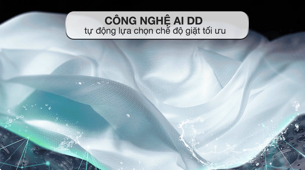 - Công nghệ AI DD với động cơ truyền động trực tiếp trang bị cùng trí tuệ nhân tạo nhận biết khối lượng giặt và chất liệu vải để lựa chọn chế độ giặt tối ưu, xử lý quần áo cẩn thận.