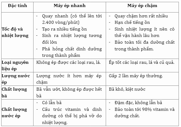 Trước khi trả lời cho câu hỏi nên mua máy ép chậm hay máy ép nhanh. Điện Máy Nhật Tân sẽ giúp bạn thấy được sự khác biệt giữa 2 dòng máy này dưới đây: