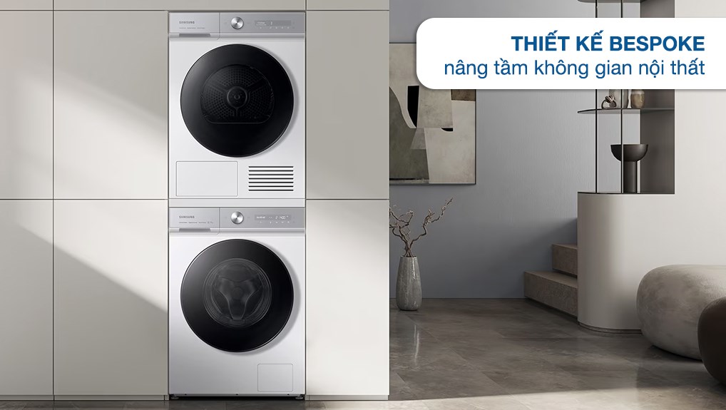 - Kiểu dáng: máy sấy lồng ngang - cửa ngang. Sở hữu đường nét tinh tế cùng thiết kế Bespoke, là dạng thiết kế phẳng của nhà Samsung. Bạn hoàn toàn có thể lắp âm tủ tạo nên sự hài hoà cho toàn bộ nội thất, nâng tầm sang trọng cho ngôi nhà.