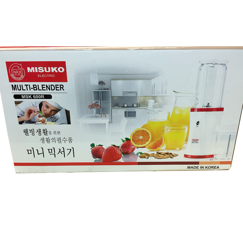 - Máy xay sinh tố đa năng Sinh tố Hàn Quốc Misuko MSK 600R (3 côí ) có cối xay được làm từ chất liệu nhựa cao cấp và lưỡi dao làm bằng thép không gỉ sắc bén, không tương tác hóa học với thực phẩm ngay cả trong điều kiện nhiệt độ cao . Sản xuất tại Hàn Quốc