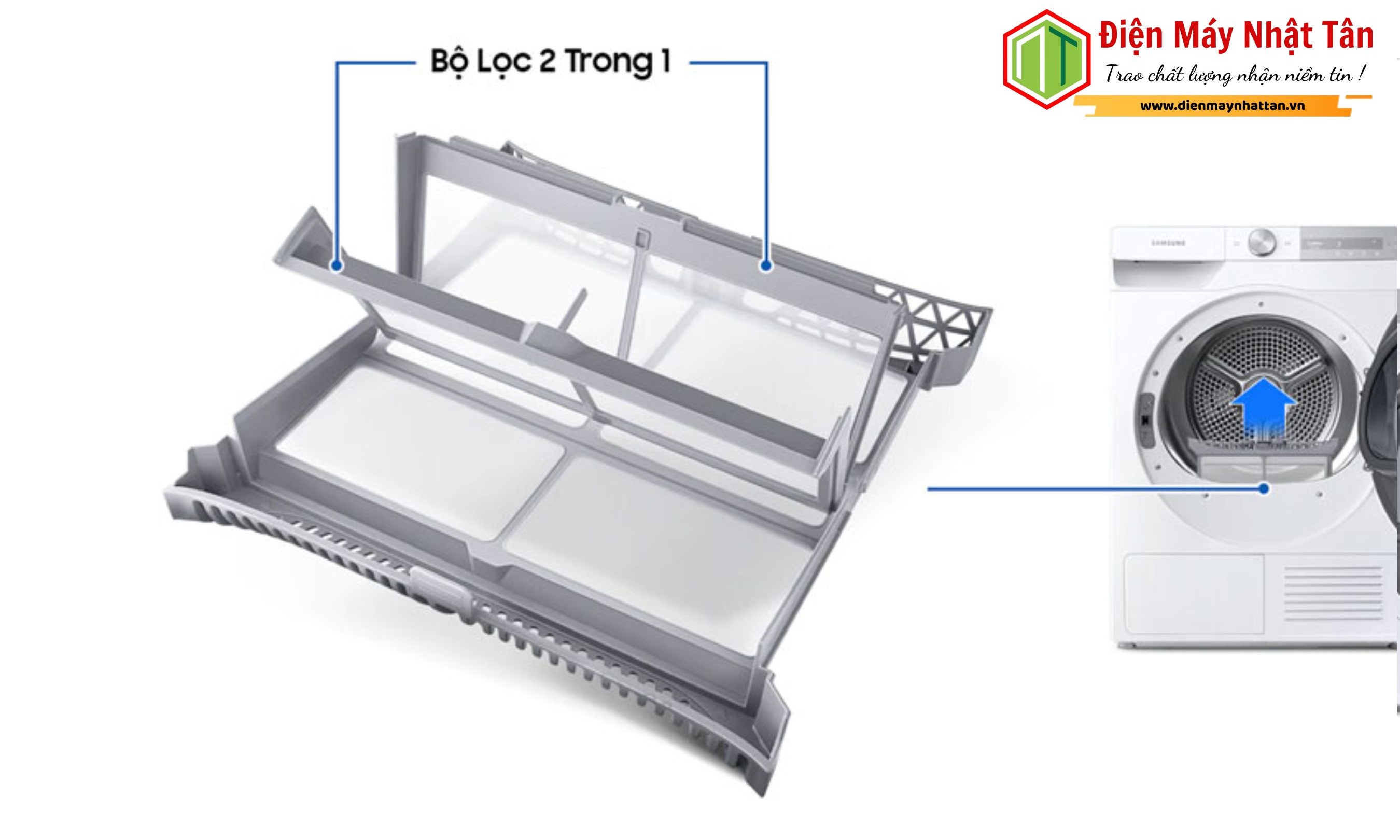 Thiết kế bộ lọc gồm 2 lớp lọc bằng thép bền bỉ, đa năng giúp lọc sạch xơ vải, bụi bẩn và dễ dàng vệ sinh. Bên cạnh đó, bộ lọc còn giúp duy trì khả năng sấy khô mạnh mẽ mà không cần đến màn lọc trao đổi nhiệt.